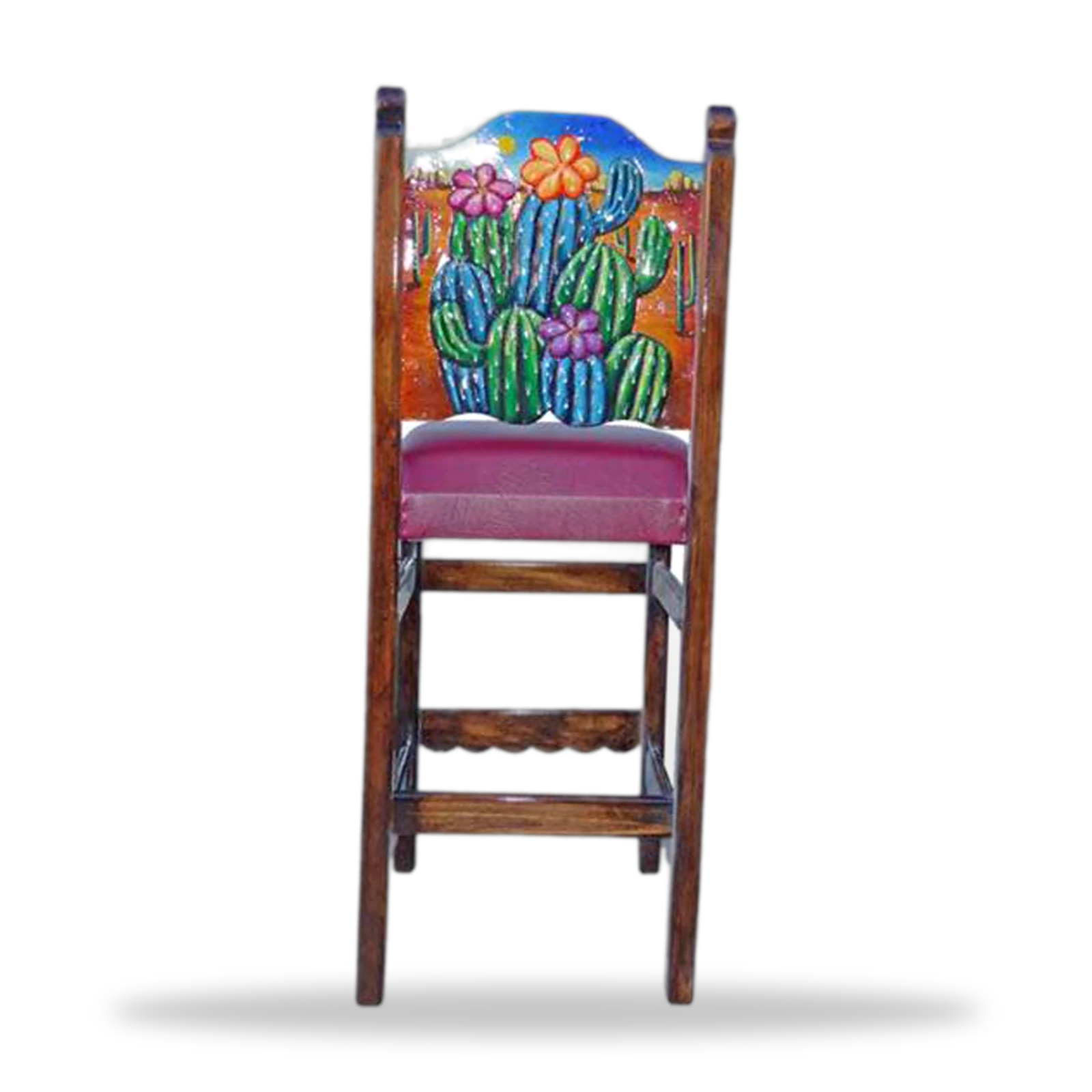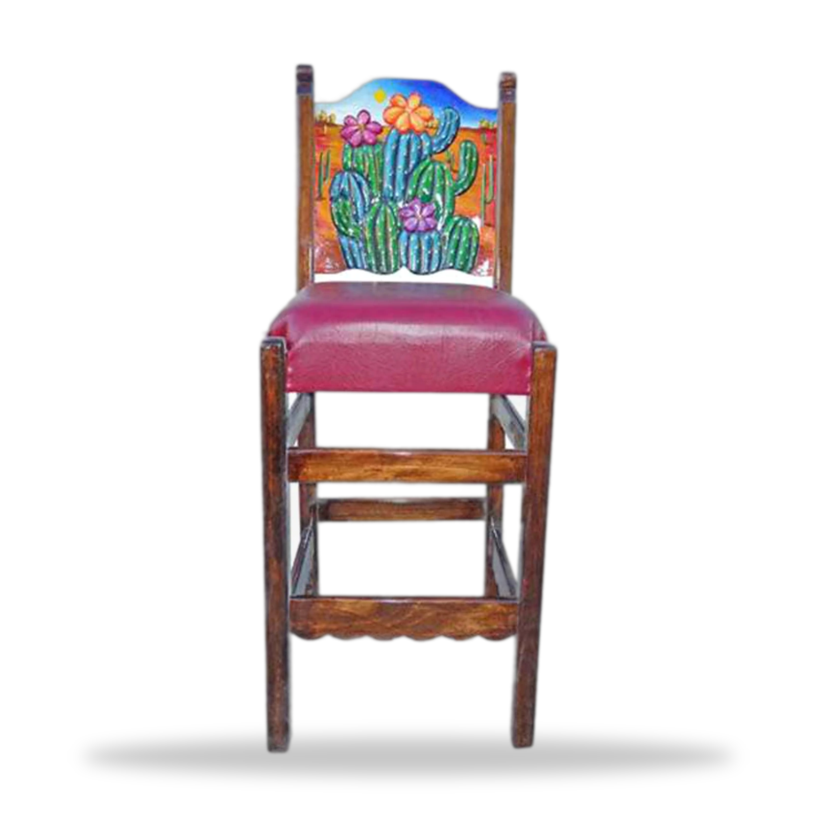 Nuestro **Cactus y Flores** (Sillas de Bar) está elaborada artesanalmente en madera de alta calidad. Diseñada para aportar un estilo auténtico y rústico a tu restaurante o bar, combina resistencia, comodidad y un acabado mexicano único.