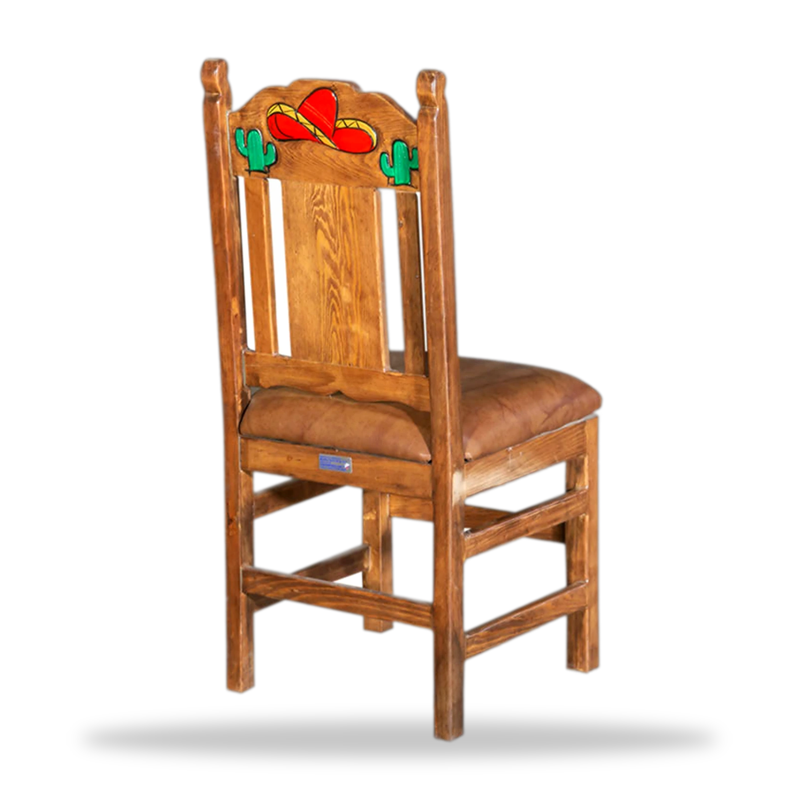 Este sillas rusticas sombrero y cactus artesanal en madera maciza. Resistente, auténtico y perfecto para restaurantes y bares con estilo mexicano.